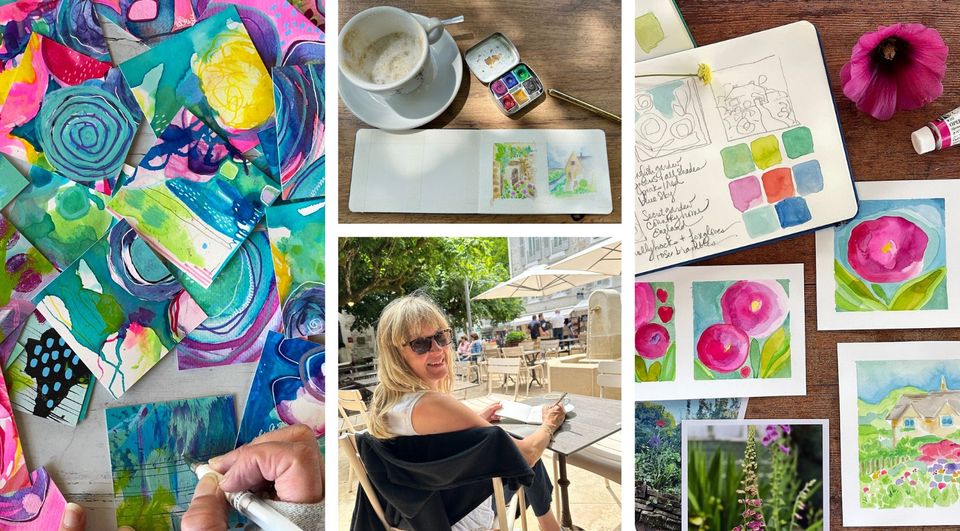Through her online courses like “Layered Petals,” “Colorful Joy,” and “Watercolors in Bloom,” as well as international retreats in Ireland, France, and Santa Cruz, Andrea offers welcoming, inspiring spaces where art is made simple and fun. She leads mixed-media workshops, sketchbook clubs, and in-person retreats that emphasize playful learning, community connection, and creative courage, with no experience required.